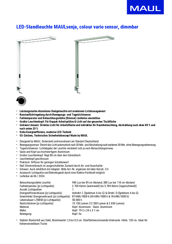 Lampa LED z zaciskiem Maul neu 8202602 LED 6 W biały