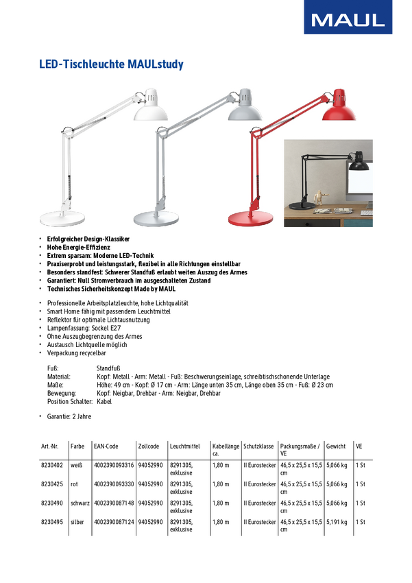 Lampa stołowa Maul 8230402 E-27 biały
