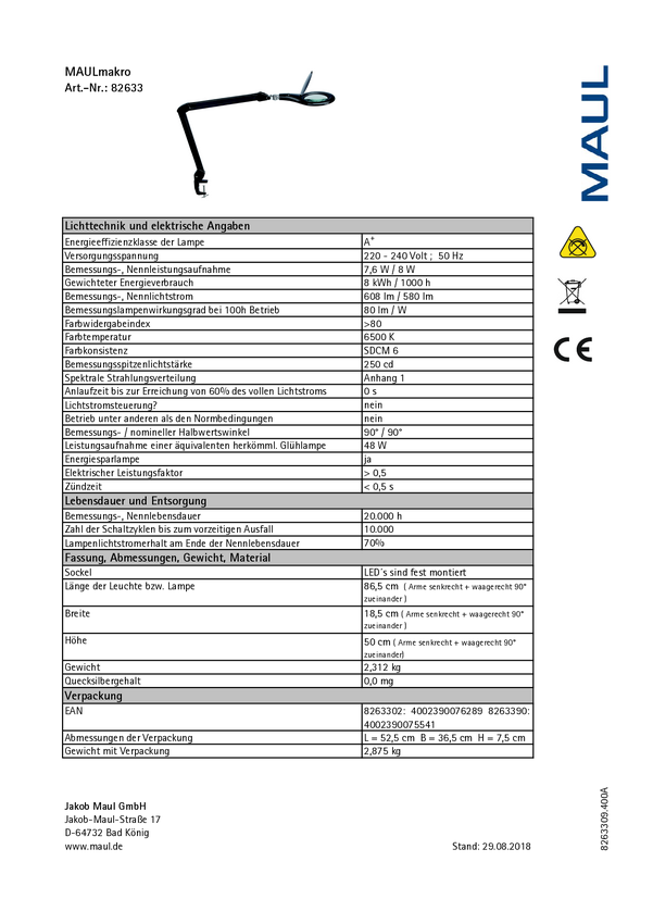 Lupa z oświetleniem LED Maul Leuchtlupe MAULmakro 5 mm
