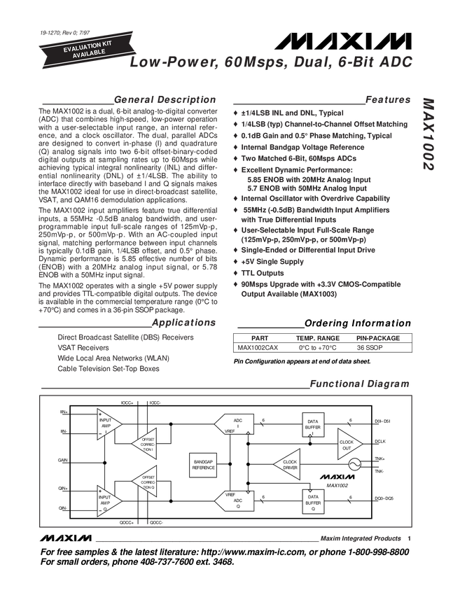 Low-Power, 60Msps, Dual, 6-Bit ADC