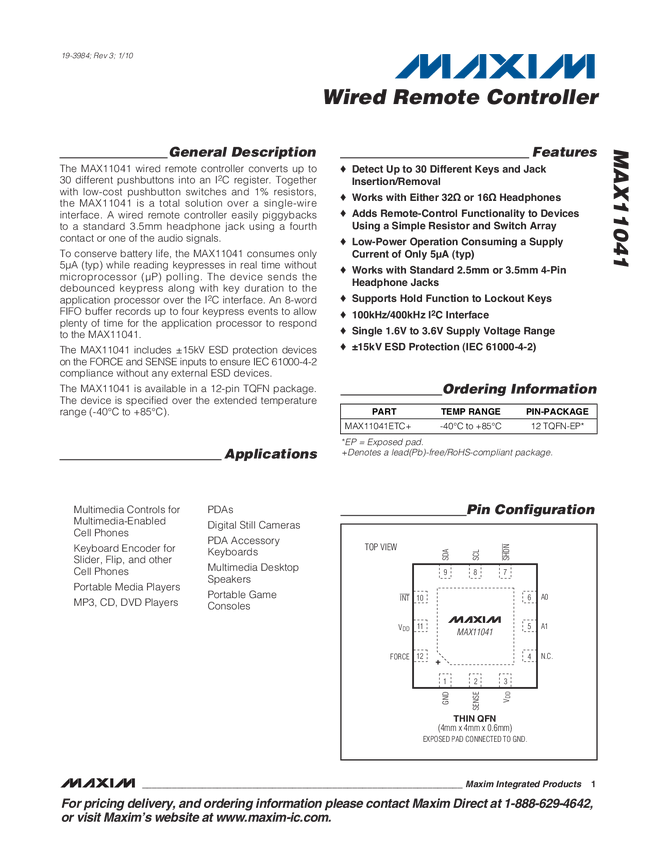 MAX11040K, MAX11060 24-/16-Bit, 4-Channel, Simultaneous-Sampling, Cascadable, Sigma-Delta ADCs