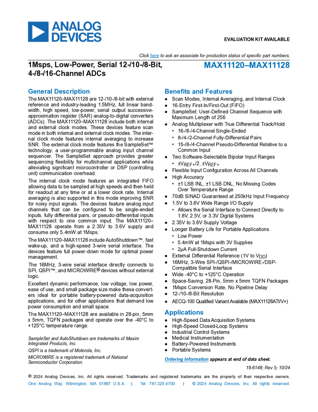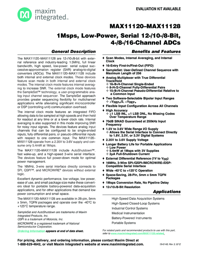 MAX11120, MAX11121, MAX11122, MAX11123, MAX11124, MAX11125, MAX11126, MAX11127, MAX11128 1Msps, Low-Power, Serial 12-/10-/8-Bit, 4-/8-/16-Channel ADCs
