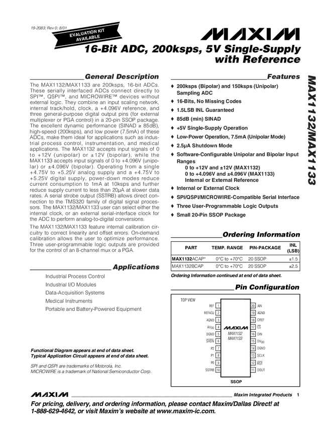 16-Bit ADC, 200ksps, 5V Single-Supply with Reference