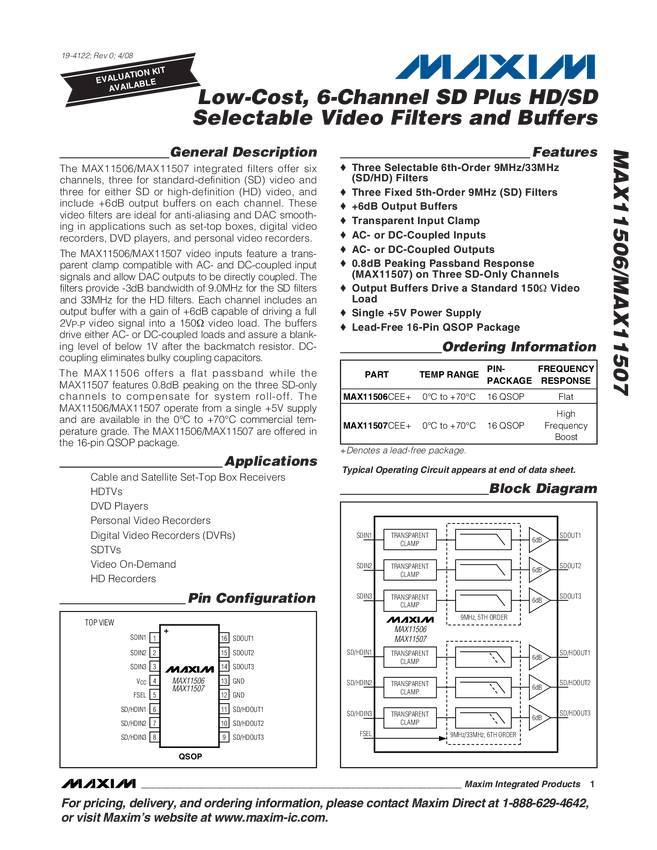 Low-Cost, 6-Channel SD Plus HD/SD Selectable Video Filters and Buffers