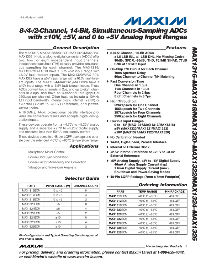 8-/4-/2-Channel, 14-Bit, Simultaneous-Sampling ADCs with ±10V, ±5V, and 0 to +5V Analog Input Ranges