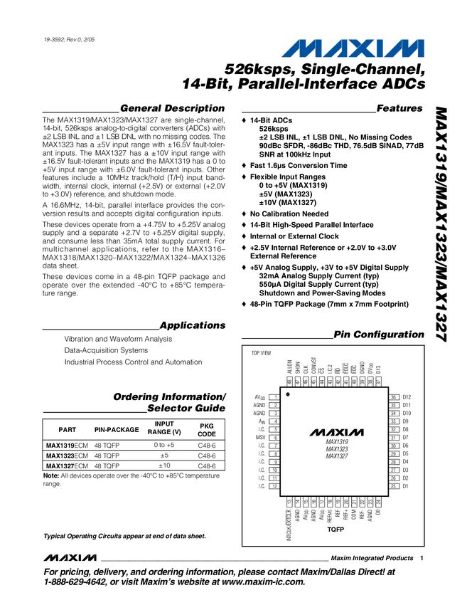 526ksps, Single-Channel, 14-Bit, Parallel-Interface ADCs