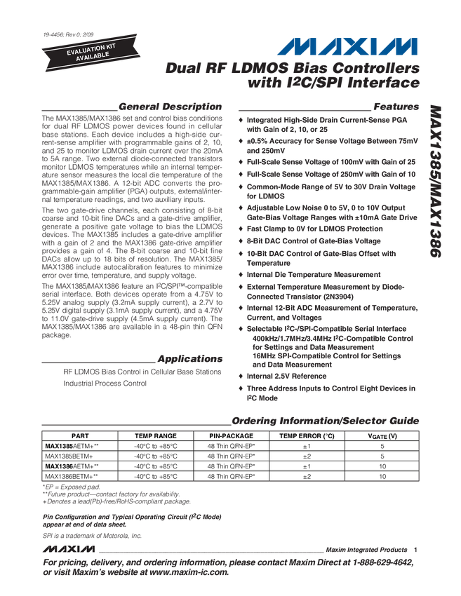 Dual RF LDMOS Bias Controllers with I²C/SPI Interface