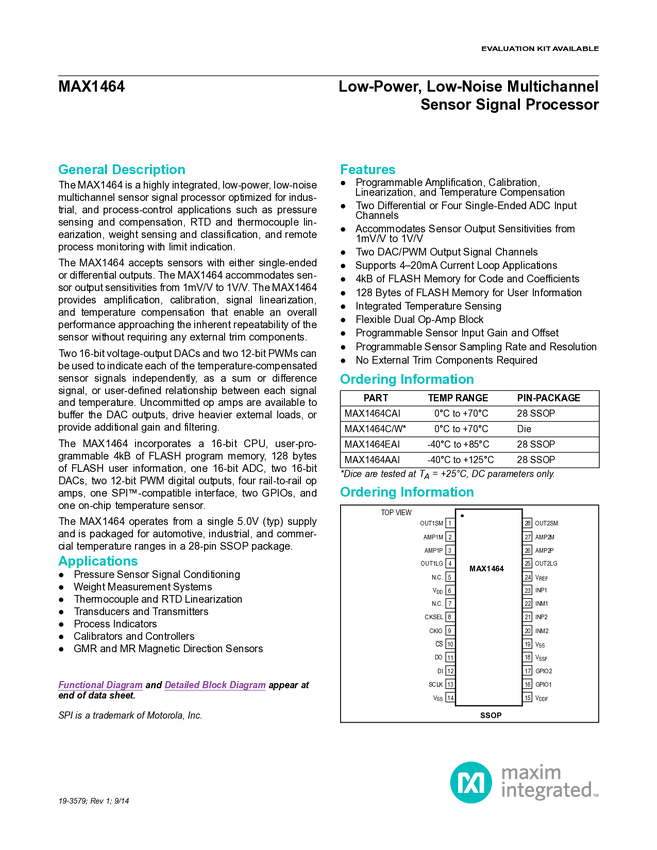 MAX1464 Low-Power, Low-Noise Multichannel Sensor Signal Processor
