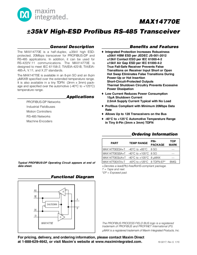 MAX14770E High-ESD Profibus RS-485 Transceiver