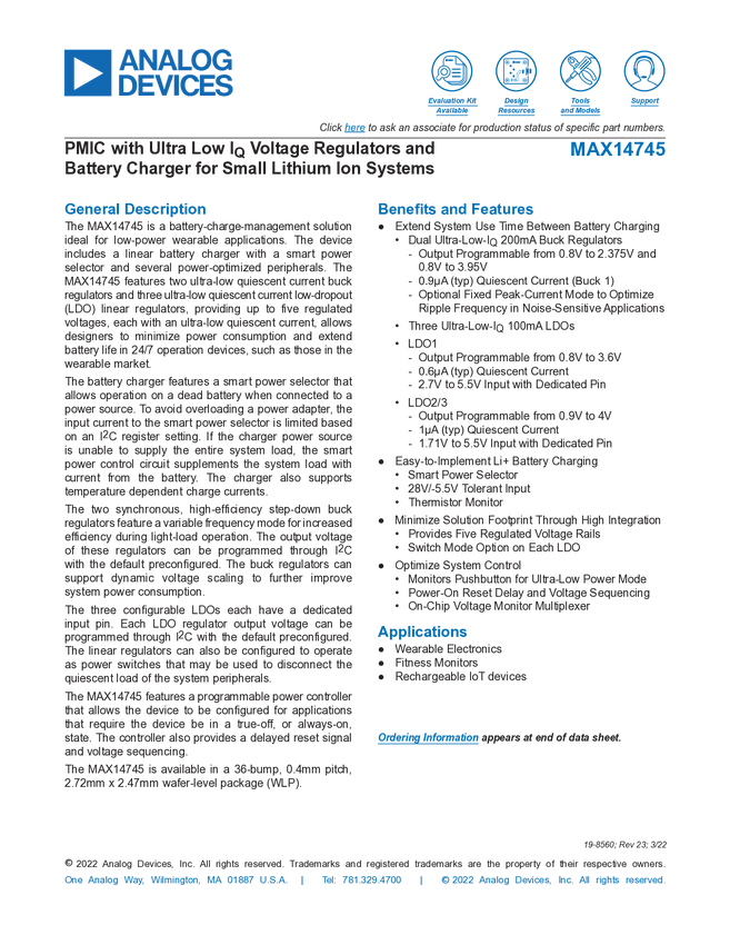 PMIC with Ultra Low I Voltage Regulators and Battery Charger for Small Lithium Ion Systems