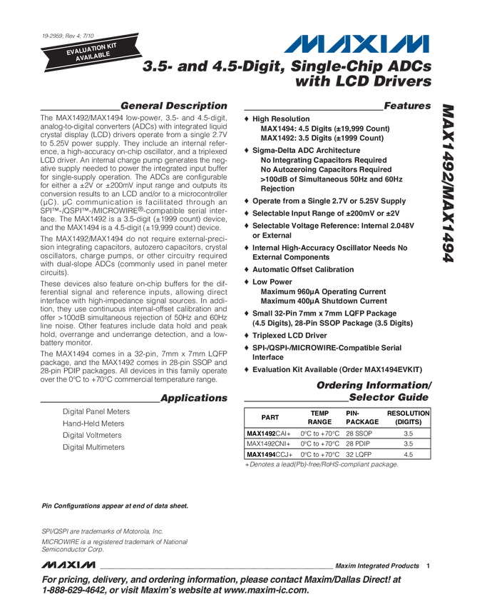 3.5- and 4.5-Digit, Single-Chip ADCs with LCD Drivers