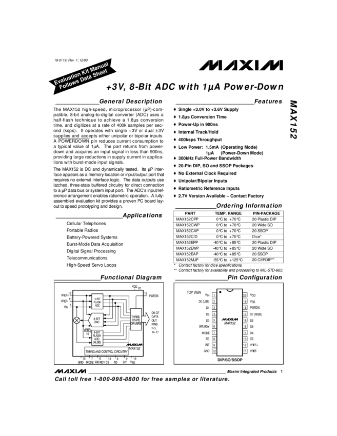 MAX152 3V, 8-Bit ADC with 1µA Power Down