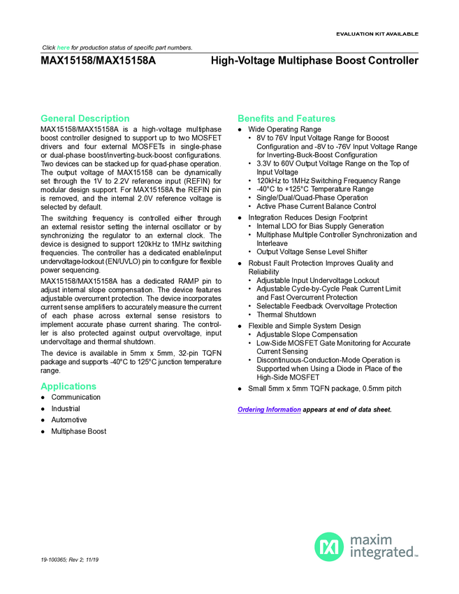 High-Voltage Multiphase Boost/Flyback Controller with No-Opto Feedback