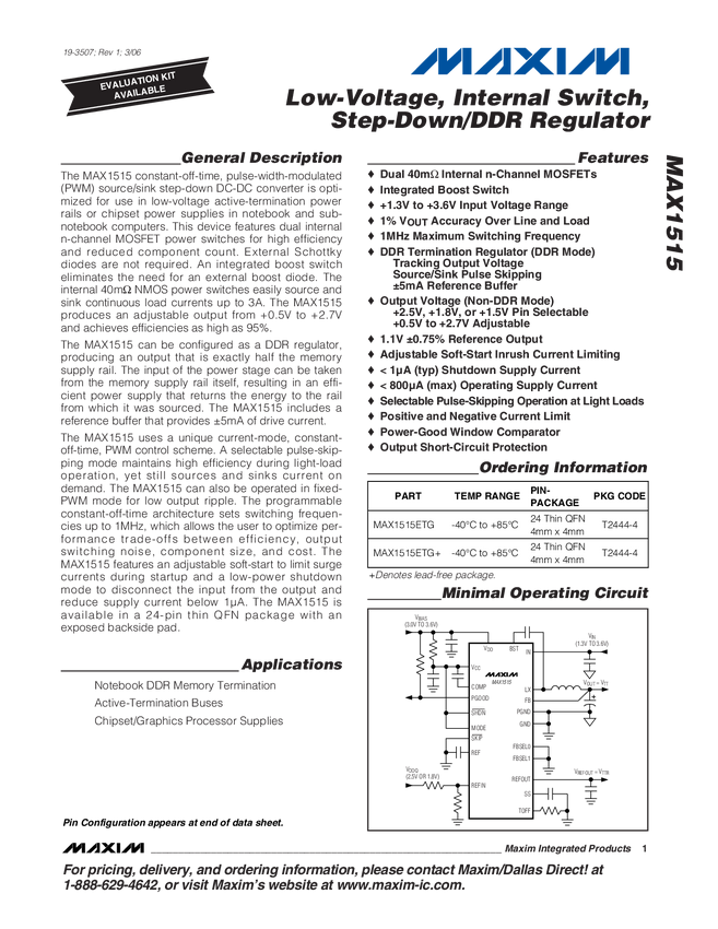Low-Voltage, Internal Switch, Step-Down/DDR Regulator