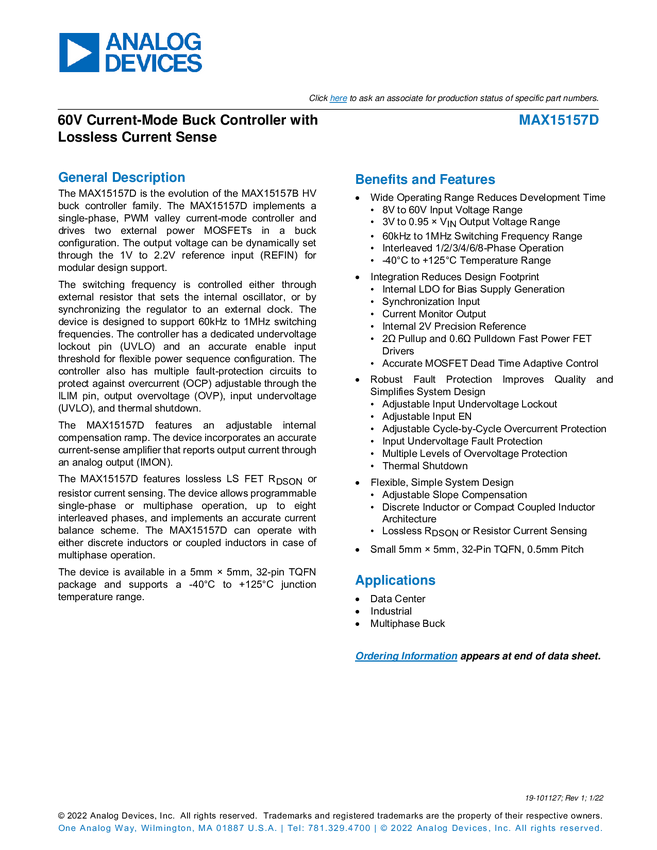 60V Current-Mode Buck Controller with Lossless Current Sense