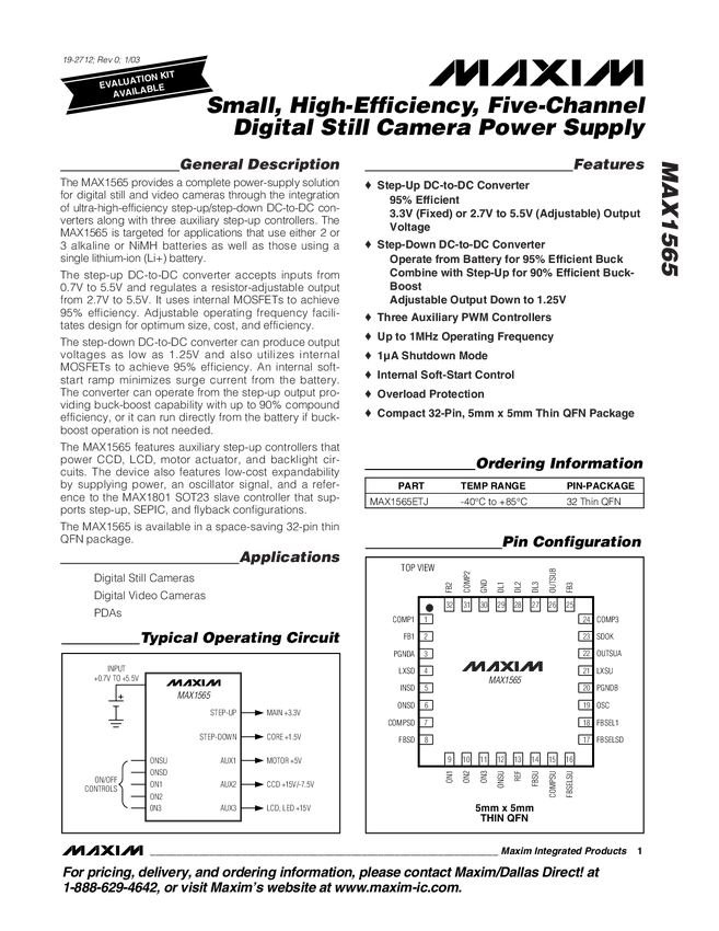 Small, High-Efficiency, Five-Channel Digital Still Camera Power Supply