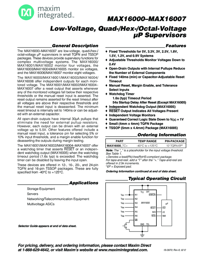 MAX16000, MAX16001, MAX16002, MAX16003, MAX16004, MAX16005, MAX16006, MAX16007 Low-Voltage, Quad-/Hex-/Octal-Voltage µP Supervisors in TQFN