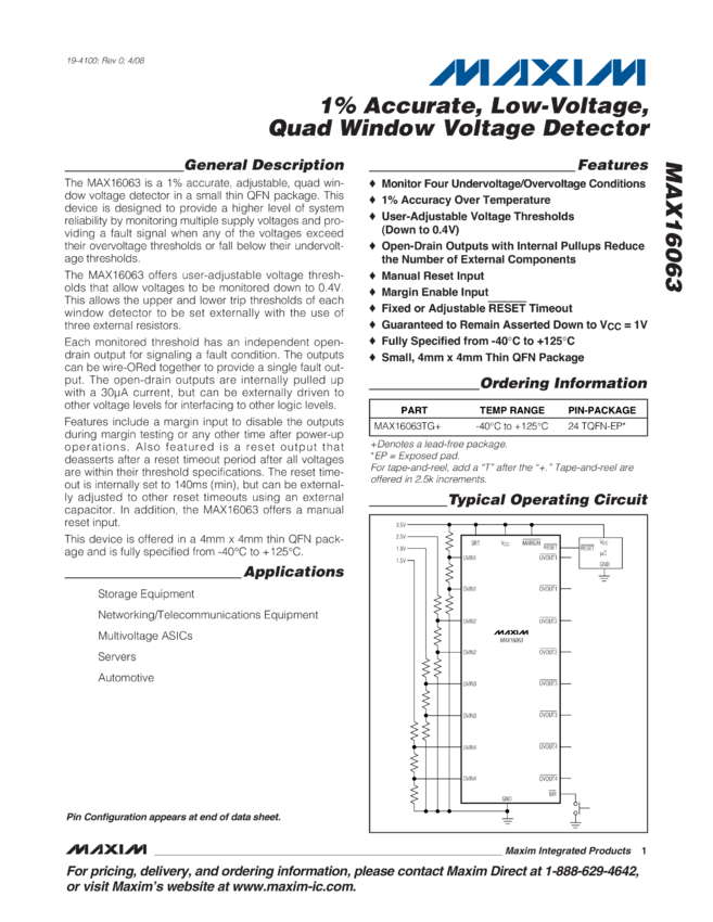 MAX16063 1% Accurate, Low-Voltage, Quad Window Voltage Detector