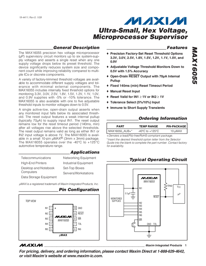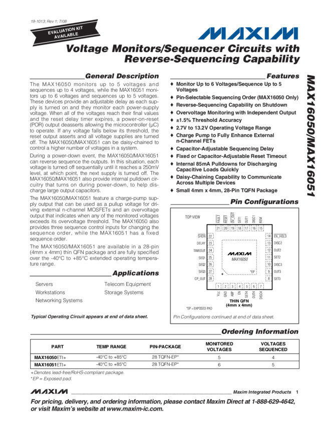 MAX16051 Hex Voltage, Power-Supply Sequencer/Monitor with Reverse Sequence Capability