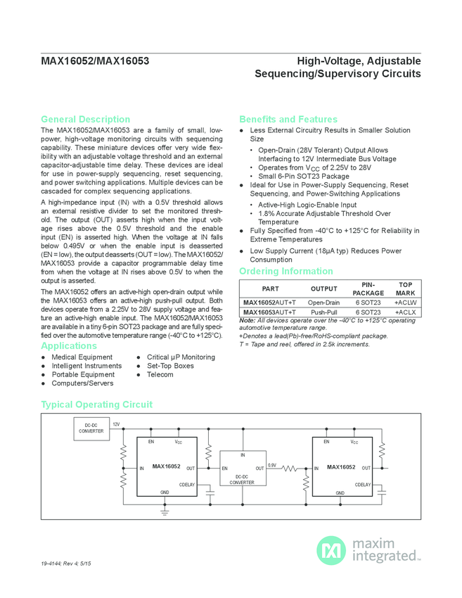 MAX16052, MAX16053 High-Voltage, Adjustable Sequencing/Supervisory Circuits