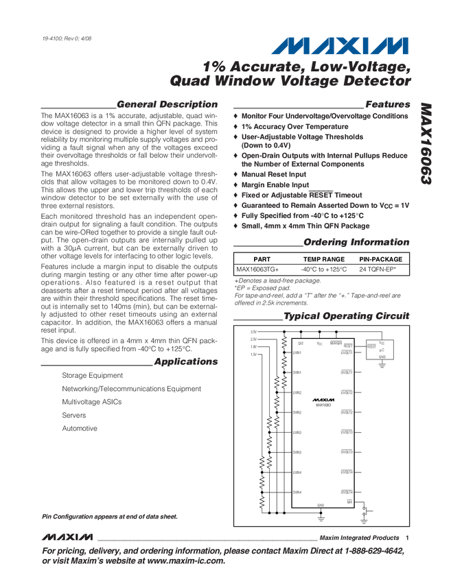 1% Accurate, Low-Voltage, Quad Window Voltage Detector
