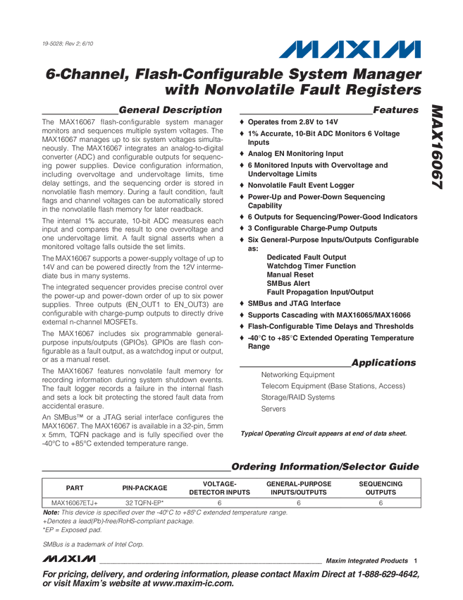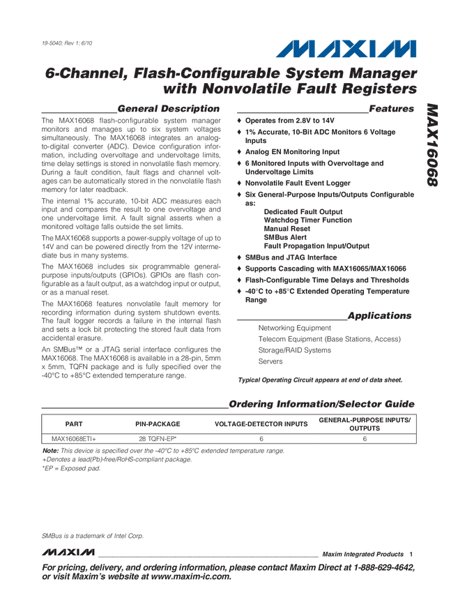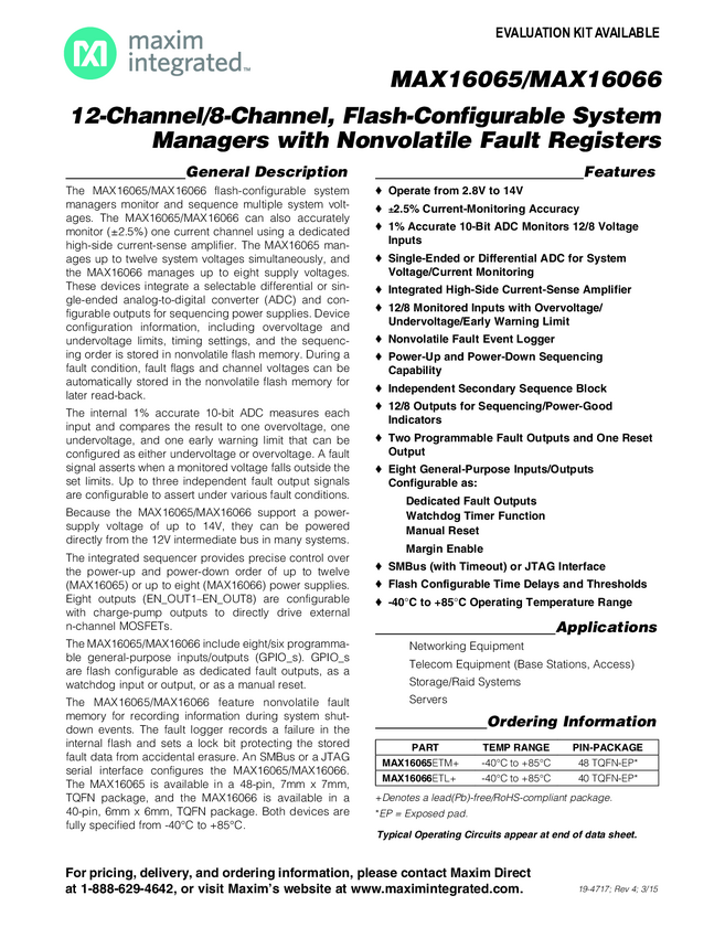 MAX16065, MAX16066 12-Channel/8-Channel Flash-Configurable System Managers with Nonvolatile Fault Registers