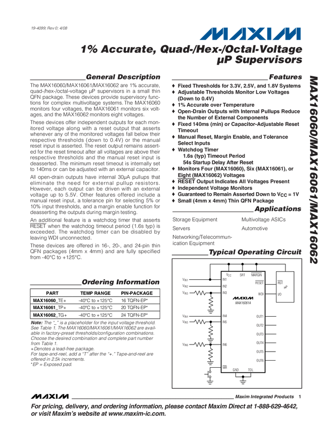 1% Accurate, Quad-/Hex-/Octal-Voltage µP Supervisors