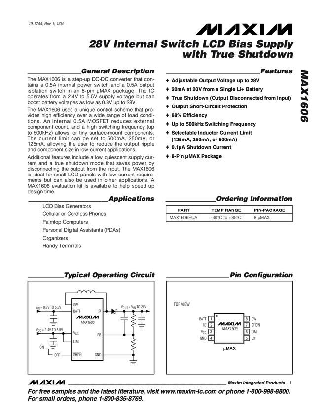 28V Internal Switch LCD Bias Supply with True Shutdown™