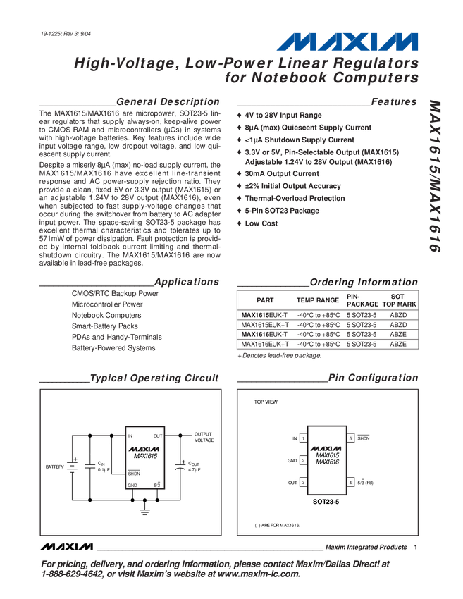 High-Voltage, Low-Power Linear Regulators for Notebook Computers