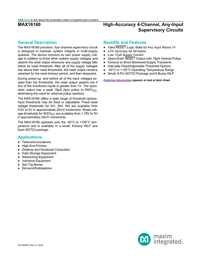 High-Accuracy 4-Channel, Any-Input Supervisory Circuits