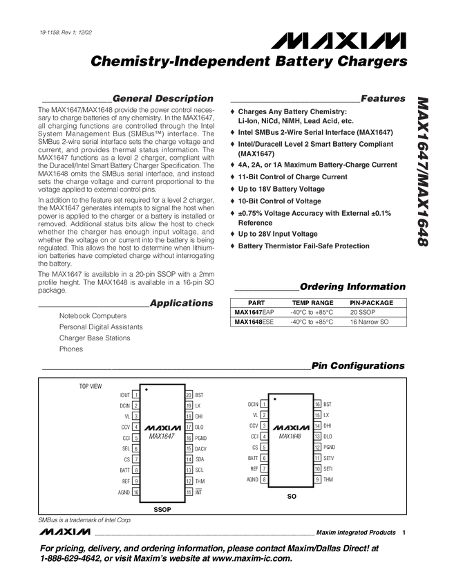 5V/3.3V or Adjustable, High-Efficiency, Low-Dropout, Step-Down DC-DC Controller