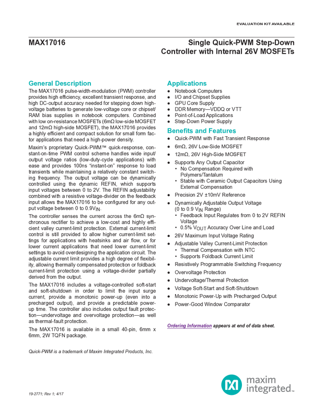 Single Quick-PWM Step-Down Controller with Internal 26V MOSFETs