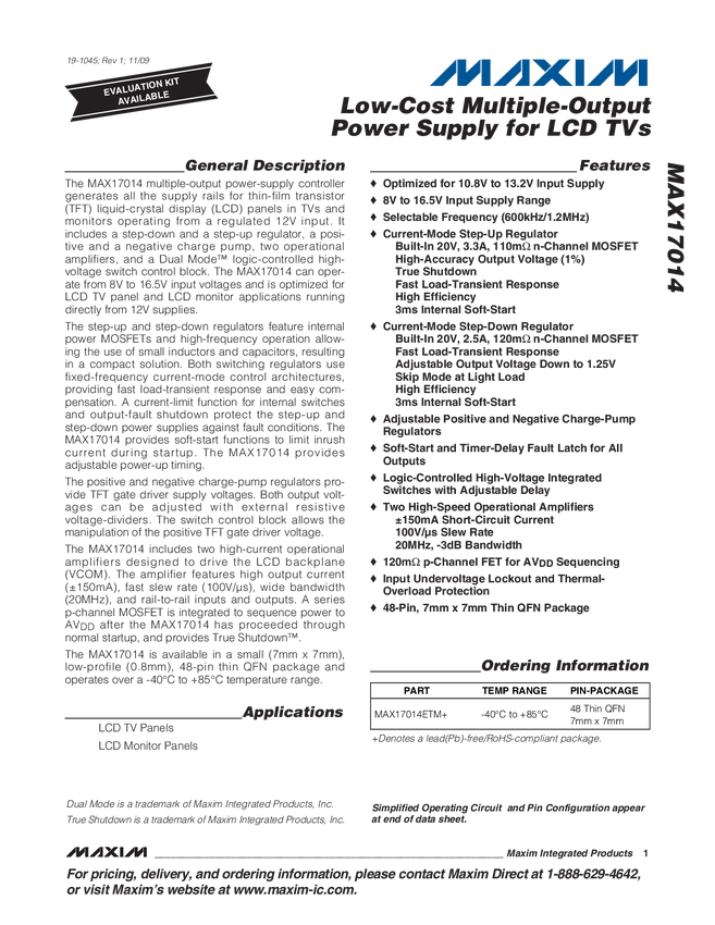 MAX17019 High-Input-Voltage Quad-Output Controller