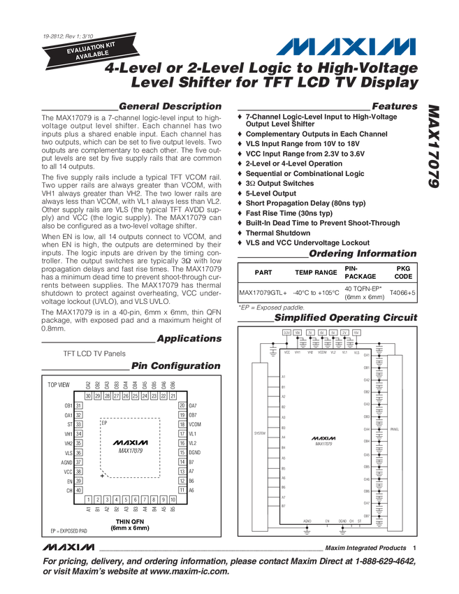4-Level or 2-Level Logic to High-Voltage Level Shifter for TFT LCD TV Display