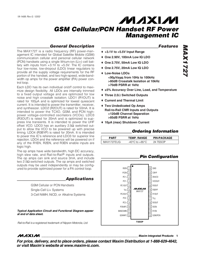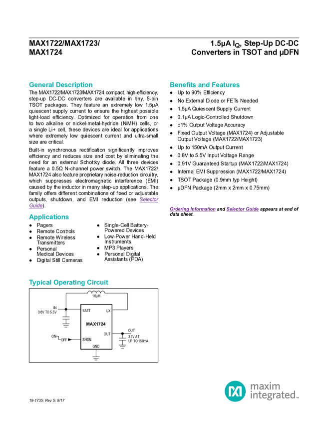 MAX1724 1.5&#181A IQ, Step-Up DC-DC Converters in Thin SOT23-5