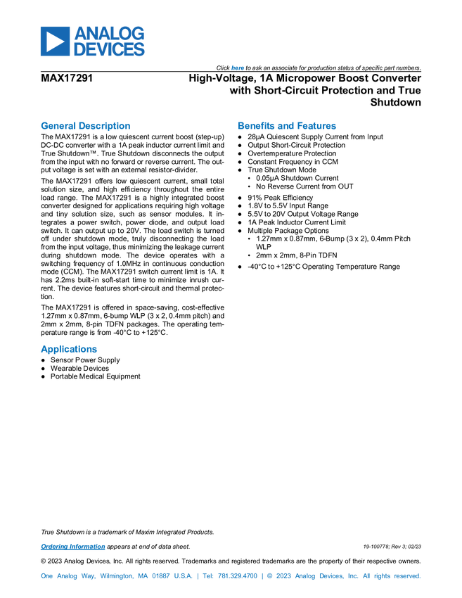 1.5µA I, Step-Up DC-DC Converters in TSOT and µDFN