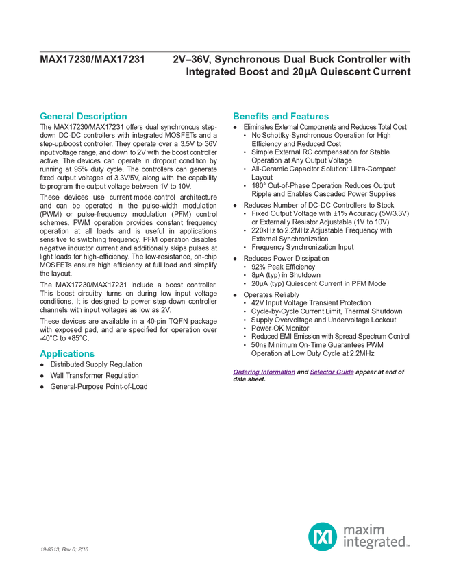 2V–36V, Synchronous Dual Buck Controller with Integrated Boost and 20μA Quiescent Current