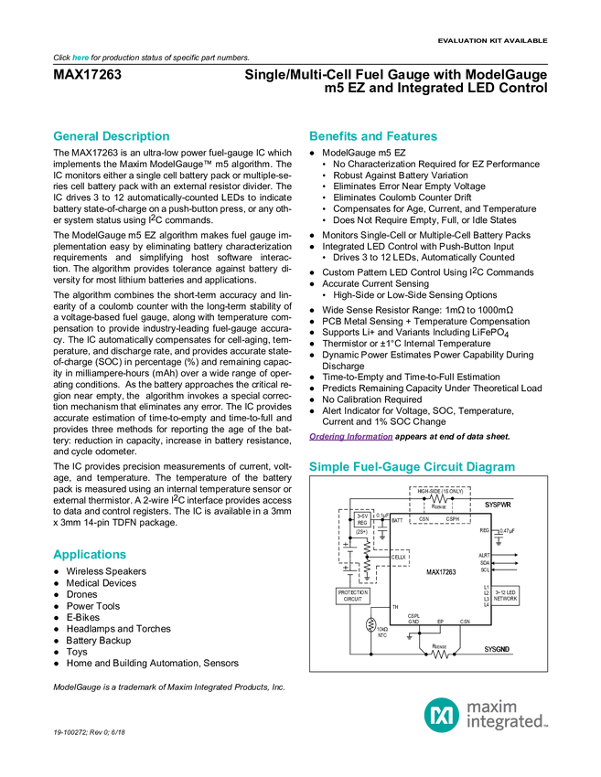 Single/Multi-Cell Fuel Gauge with ModelGauge m5 EZ and Integrated LED Control