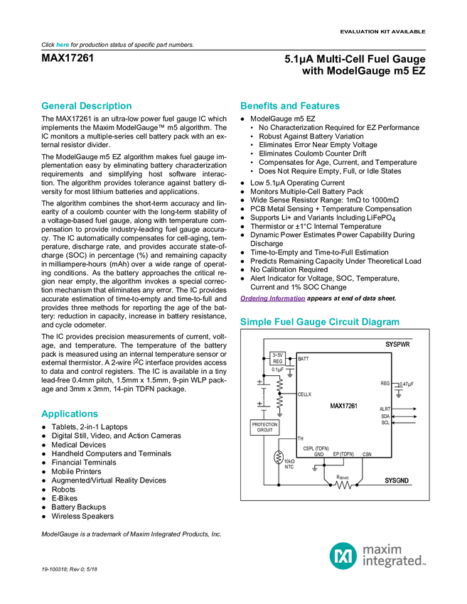 5.1µA Multi-Cell Fuel Gauge with ModelGauge m5 EZ