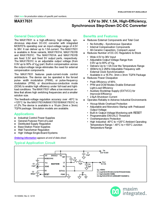 4.5V to 36V, 1.5A, High-Efficiency, Synchronous Step-Down DC-DC Converter