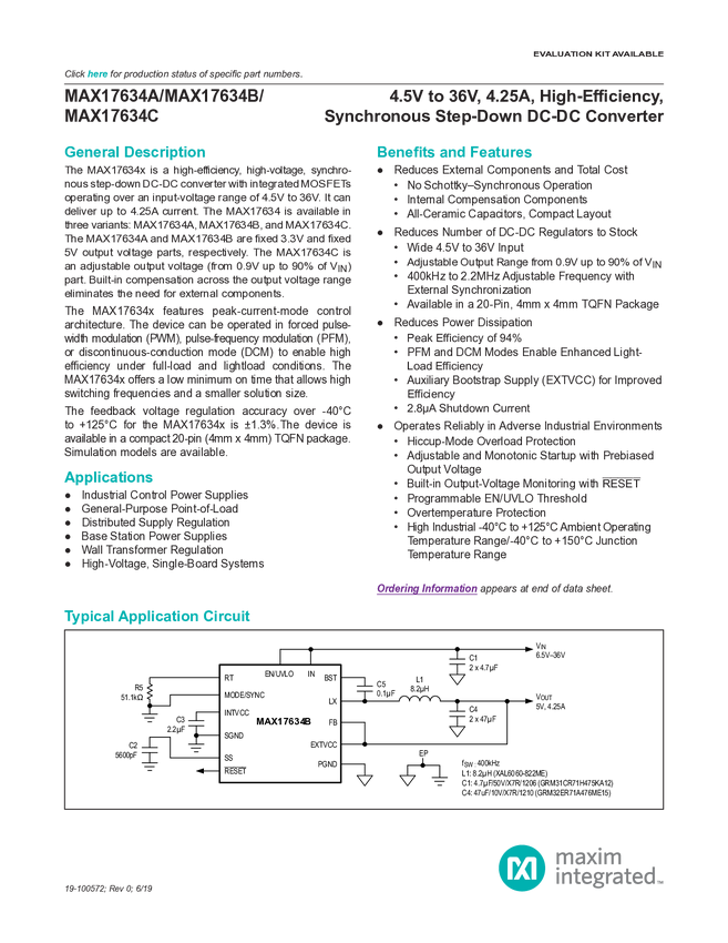4.5V to 36V, 4.25A, High-Efficiency, Synchronous Step-Down DC-DC Converter