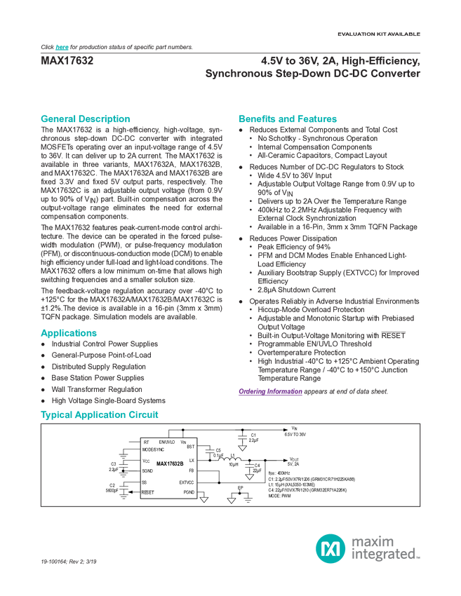 4.5V to 36V, 2A, High-Efficiency, Synchronous Step-Down DC-DC Converter
