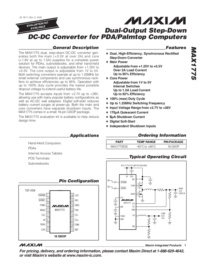 MAX1775 Dual-Output Step-Down DC-Dc Converter for PDA/Palmtop Computers
