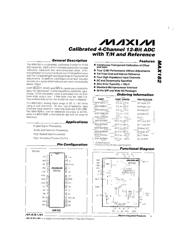 Calibrated, 4-Channel, 12-Bit ADC with Track/Hold and Reference
