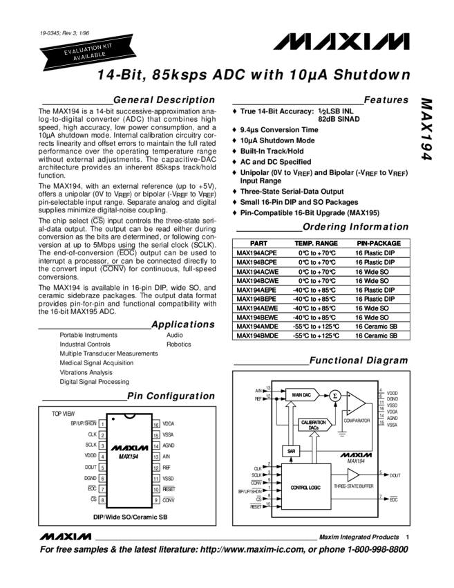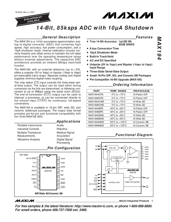 14-Bit, 85ksps ADC with 10µA Shutdown