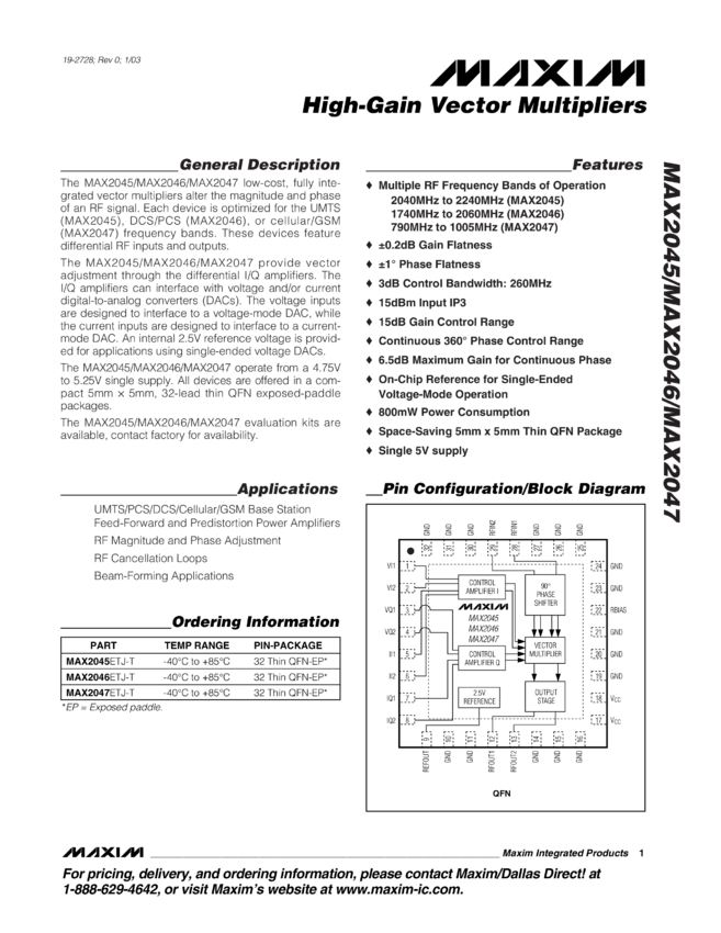 MAX2045, MAX2046, MAX2047 High-Gain Vector Multipliers