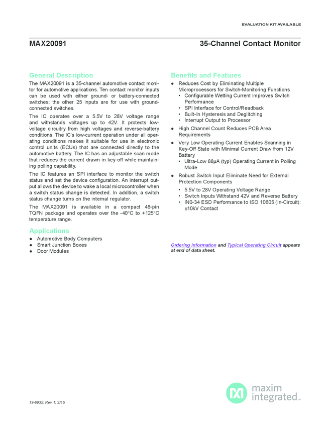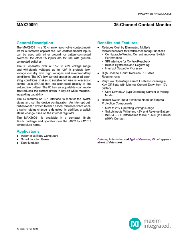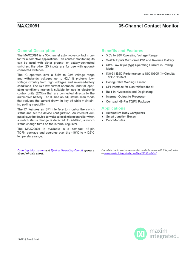 MAX20091 35-Channel Automotive Switch Monitor