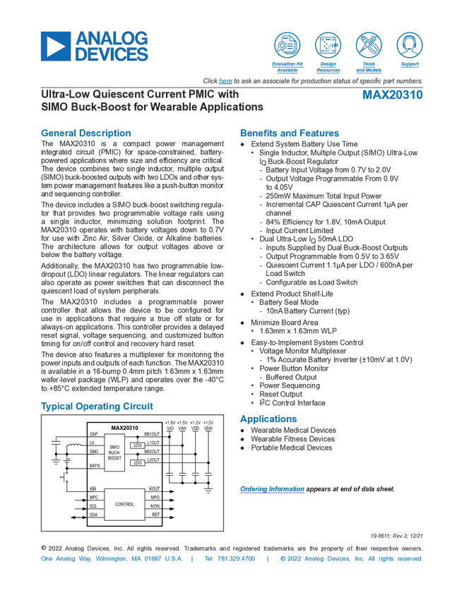 Ultra-Low Quiescent Current PMIC with SIMO Buck-Boost for Wearable Applications