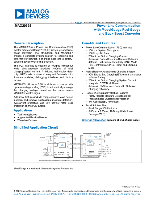 Power Line Communication with ModelGauge Fuel Gauge and Buck-Boost Converter