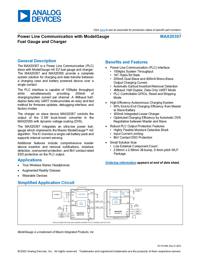 Power Line Communication with ModelGauge Fuel Gauge and Charger